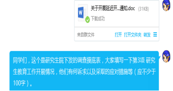 为做好研究生培养工作,学院提前拟定了研究生论文工作方案,督促导师们通过QQ视频对话、电子邮件开展多种形式的远程交流,了解学生科研计划和进度,引导学生开展科研活动,完成相应的科研任务,指导研究生毕业论文的写作,及时解决学生在研究写作中遇到的问题,确保延期返校期间师生联络不间断,科学研究与学位论文相关工作拖后,为研究生顺利毕业提供保障。