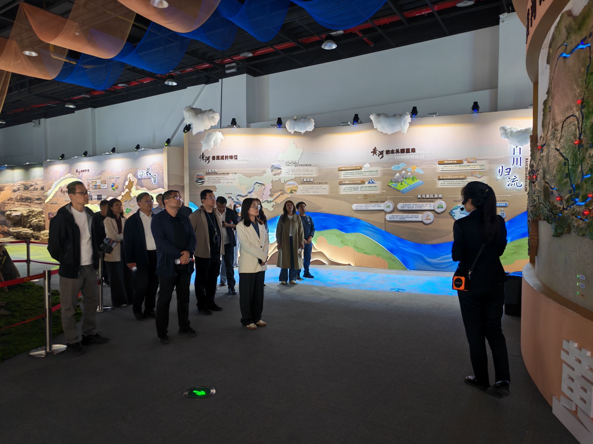 在讲解员的引导下,全体成员重点参观了量子科技展区和黄河生态保护科技展区。通过观看量子计算、量子通信等领域的科普演示与实验模型,成员们深刻领会了国家重大科技战略部署,并结合学院学科特色,围绕量子科技技术研究与学科交叉融合展开深入交流。在黄河主题展区,“数字孪生黄河动态监测系统”生态保护智慧化平台等前沿技术的互动体验,进一步激发了大家对科技创新服务国家战略需求的思考。